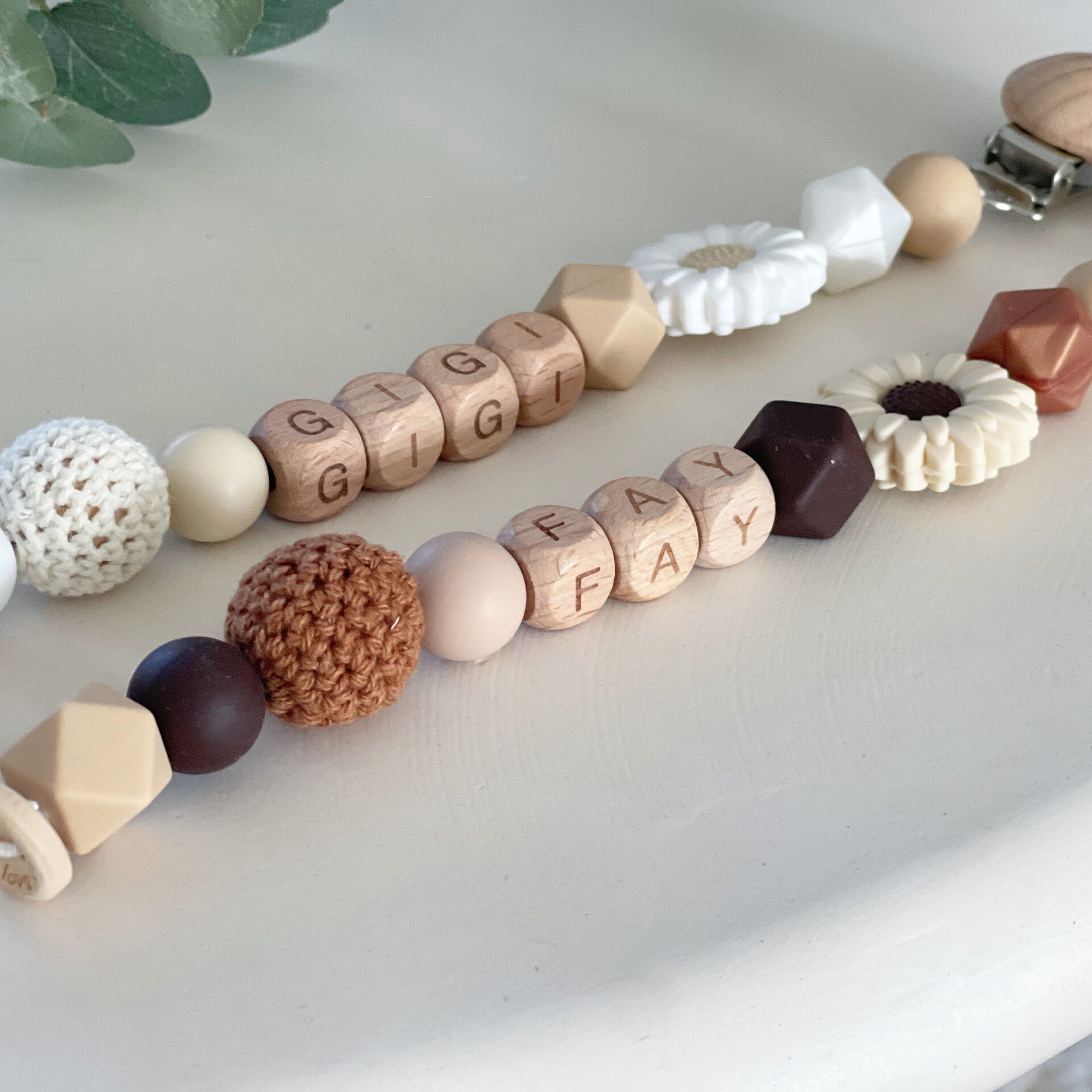 Bij Ann & Soof combineren we veiligheid en stijl in onze handgemaakte speenkoordjes, gemaakt van BPA-vrije siliconen en houten kralen. Elk koordje wordt met de hand kraal voor kraal geknoopt voor maximale stevigheid en veiligheid.