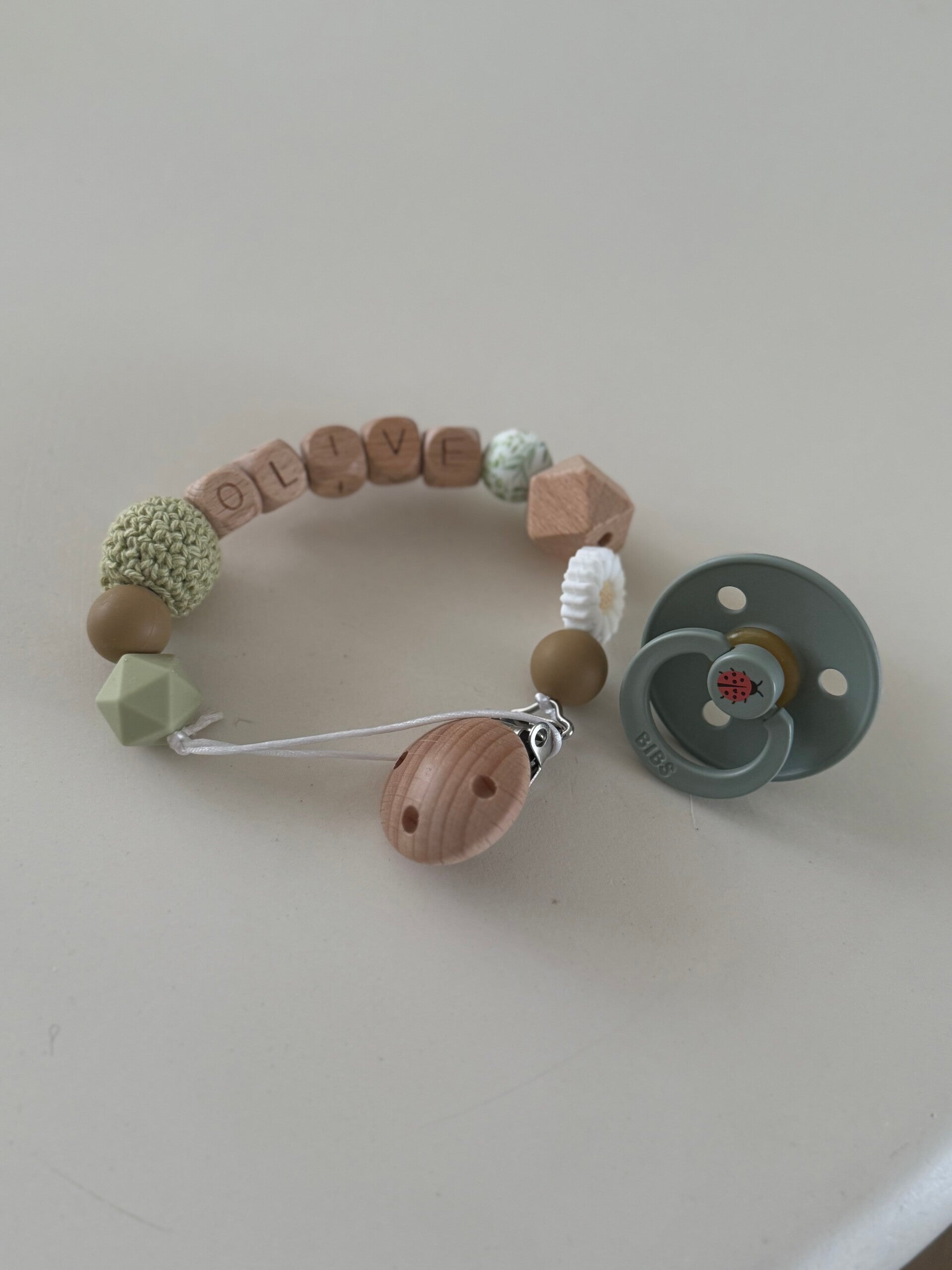Bij Ann & Soof combineren we veiligheid en stijl in onze handgemaakte speenkoordjes, gemaakt van BPA-vrije siliconen en houten kralen. Elk koordje wordt met de hand kraal voor kraal geknoopt voor maximale stevigheid en veiligheid.